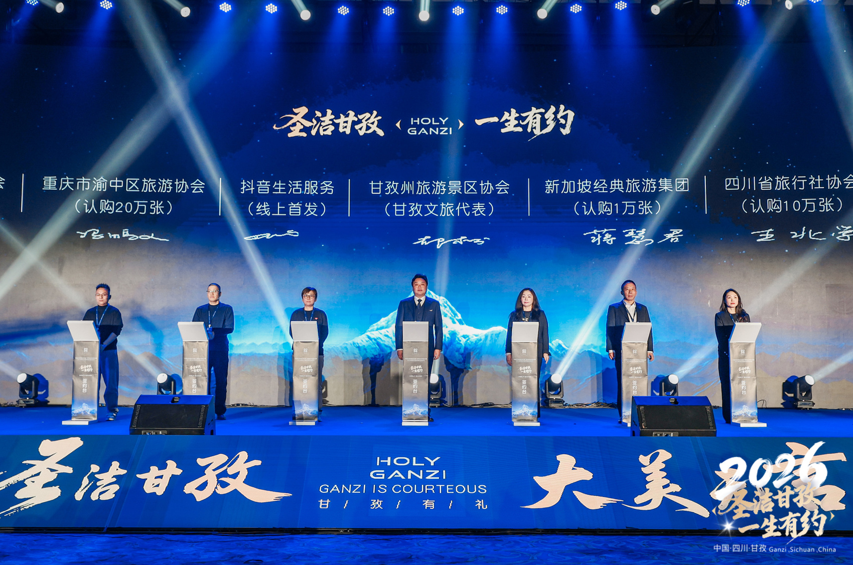 当天的活动上,甘孜州还首次公开了甘孜文旅官方吉祥物IP形象“土拨鼠阿土”和“雪豹阿布”。同时,来自川渝、珠三角、长三角等主要客源区域的旅行商认购了60万张终身制门票。活动还向参会的旅行社、自驾游俱乐部等机构及各界代表赠送了甘孜州冬季免费门票16.8万张,总价值高达1300万元。